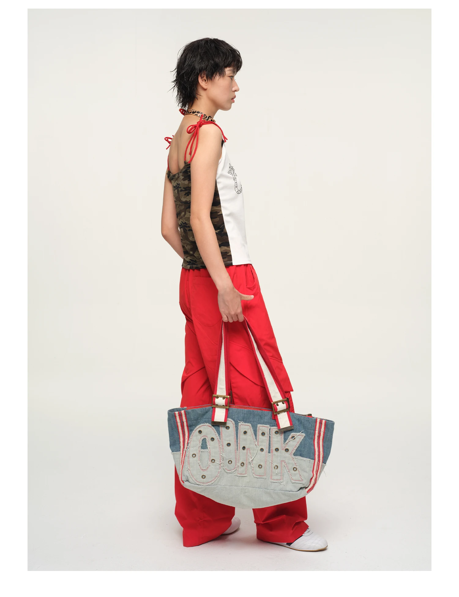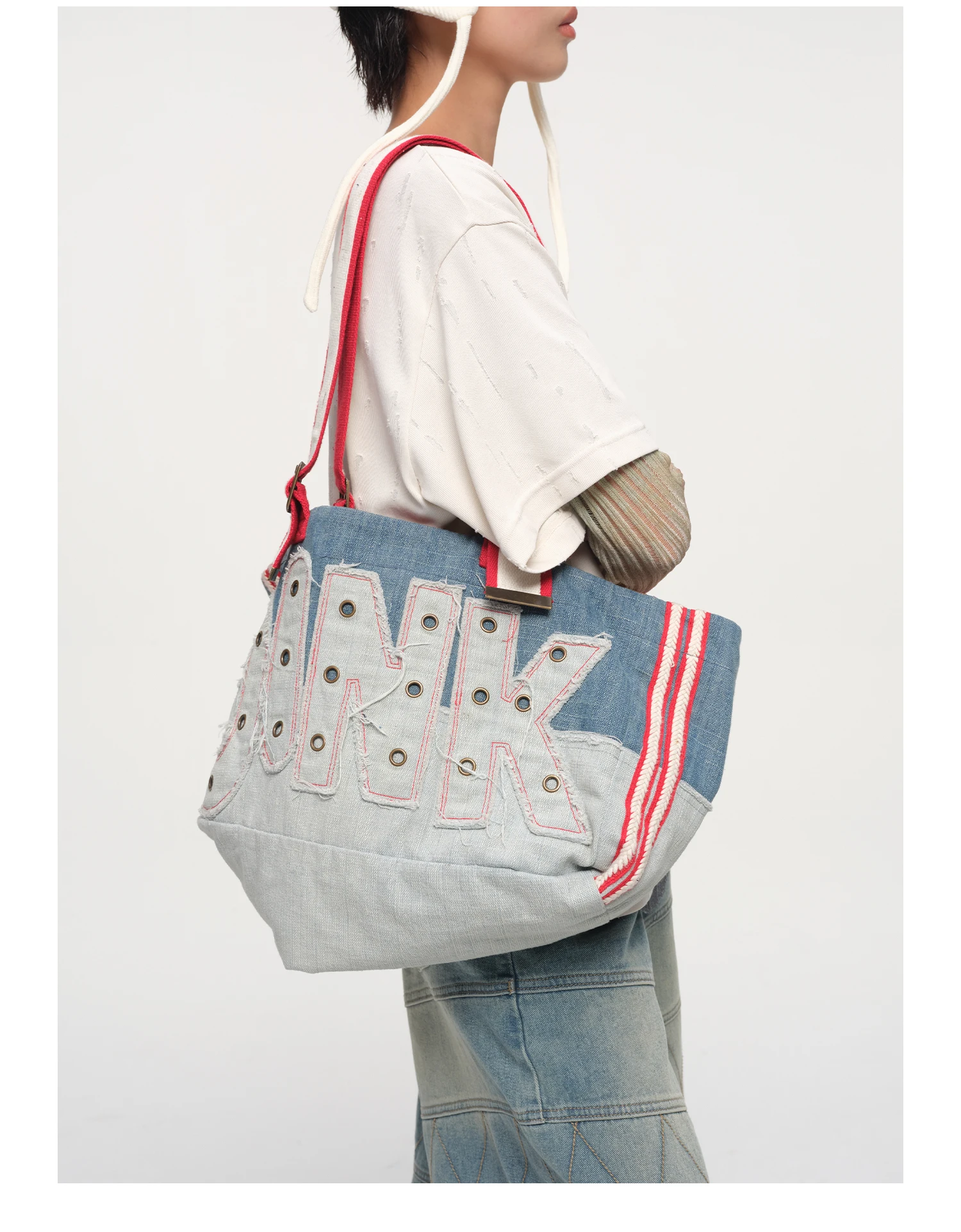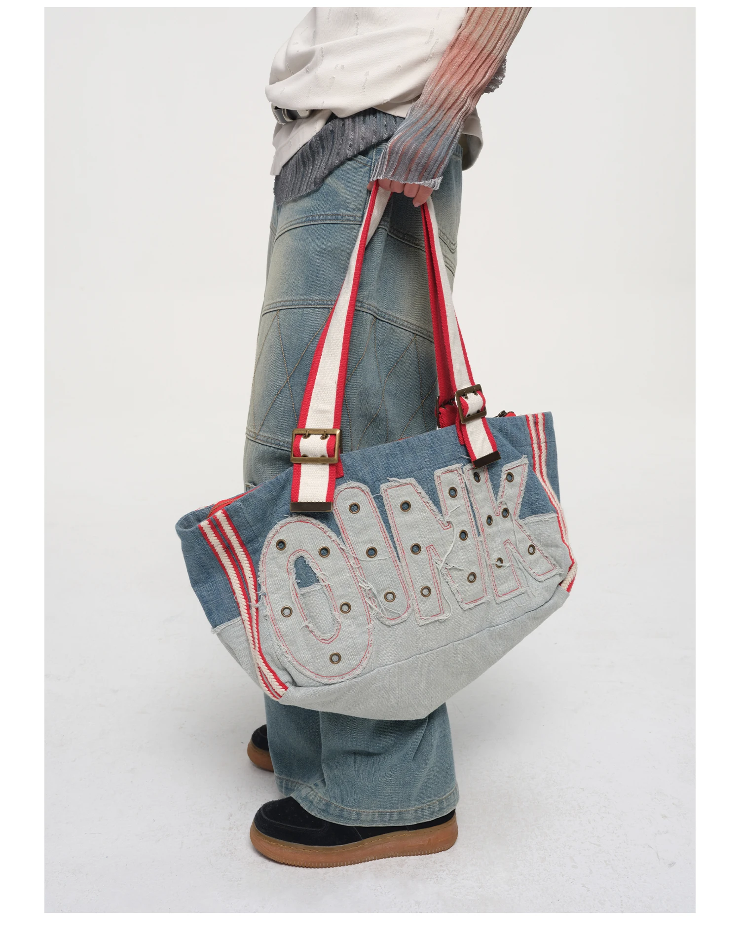 Be the first to review “American Retro Heavy-duty Letter Embroidery Metal Rivet Decoration Large Capacity Splicing Contrasting Color Shoulder Bag Trendy”